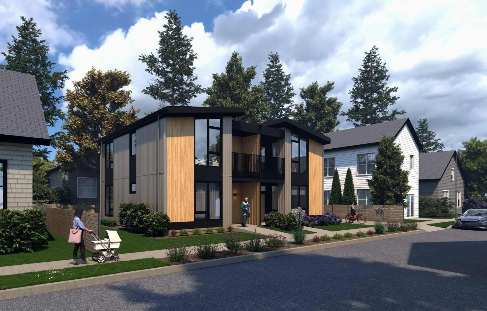 Housing that enables more homes to fit on a given site / neighborhood, while still providing the quality of life that many desire in single-family homes such as ample space, daylight, and access to outdoor space. Our Middle Housing Prototypes can be implemented in most local zoning across the state.