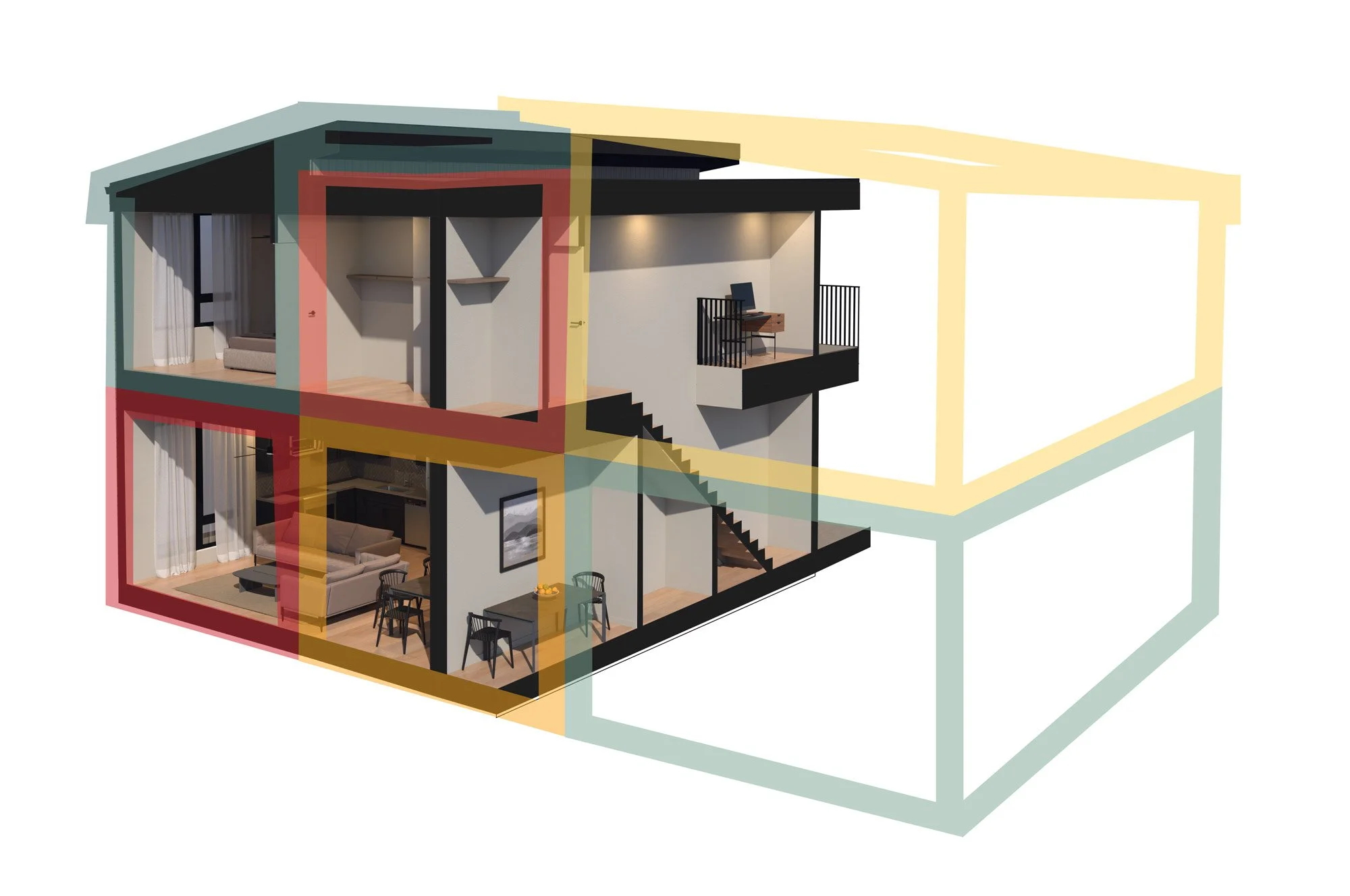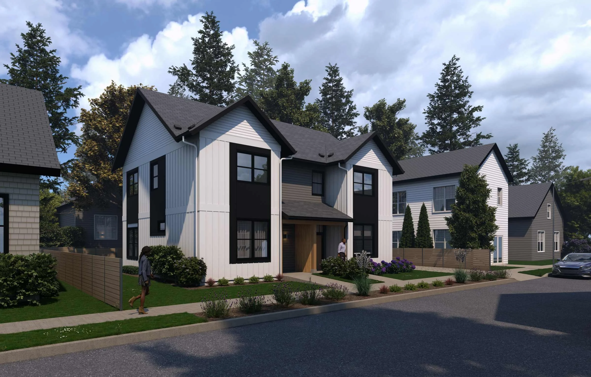 2–4 bedrooms, 2–3 stories, modern or traditional exteriors. Duplex, quadplex, or townhouse row configurations available.